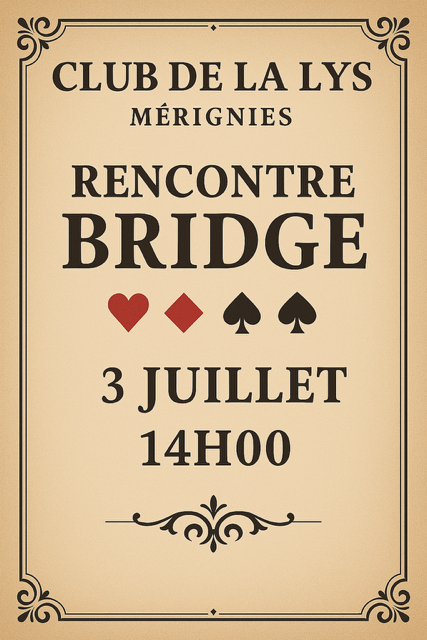 Le Cercle de la Lys accueille Mérignies le Jeudi 3 Juillet à Armentères ( 23 avenue Brossolette à Armentières)
