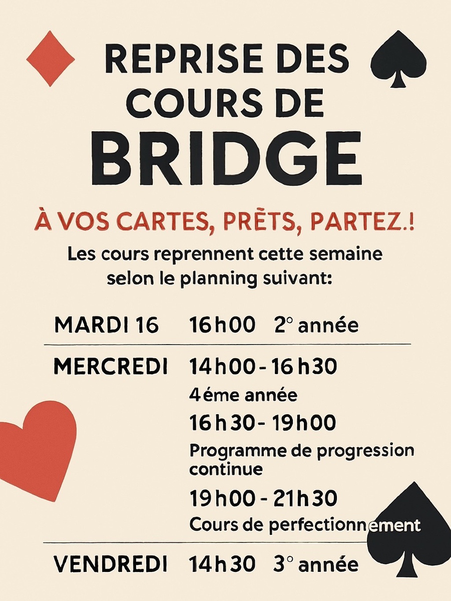 Tournoi Réal Bridge les jeudis 20:15